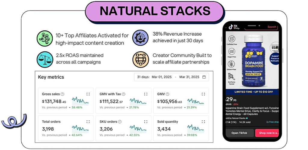 Our network of 1,000+ vetted creators produces consistent, sales-driven content through strategic seeding, briefs, and performance tracking.